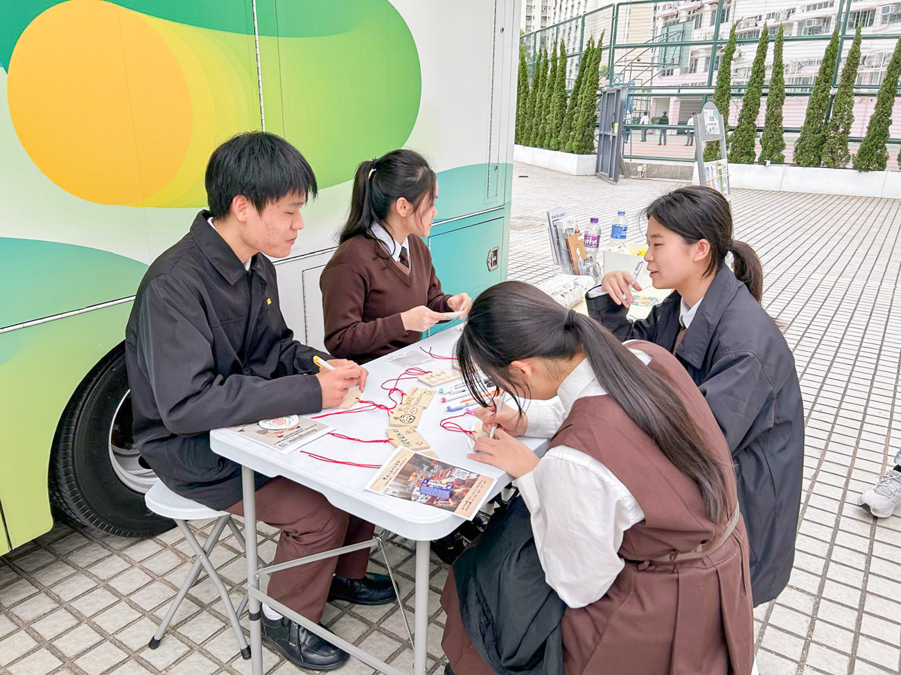 為了讓同學舒緩剛升上高中的學業壓力,本校輔導委員及社工特意安排明愛容甫中心及新生精神康復會於2月10日為全校同學及中四級學生分別舉辦了流動車攤位活動及中四級FONG ZONE 流動車減壓體驗活動暨心靈樽製作工作坊。